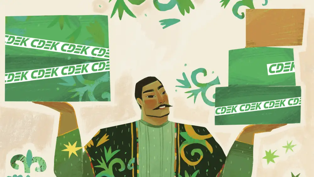 Для реализации идеи о том, что СДЭК — это не просто международная корпорация, а компания, которая учитывает потребности, менталитет и культурные особенности Казахстана, компания запустила проект с казахстанской художницей Айгерим Карибаевой. Она создала визуальные образы, отражающие локальный колорит.