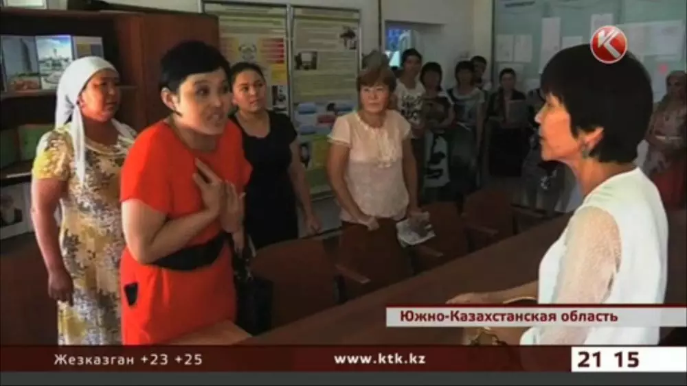 В сельской школе в ЮКО разгорелся скандал из-за беременной восьмиклассницы Скандал в школе. Кадр телеканала КТК
