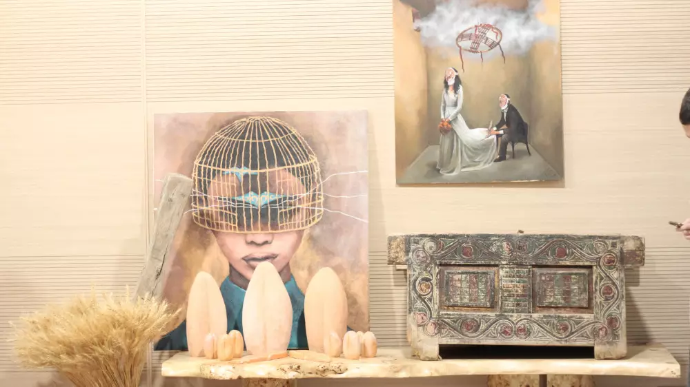 Жанғазы Сейдахмет, известный как Гозин, также представил свои работы на выставке. Его творчество связано с использованием национальных орнаментов, которые он видит как важное наследие, требующее возрождения и новой жизни. А его ручные панно пользуются особой популярностью у иностранных покупателей.