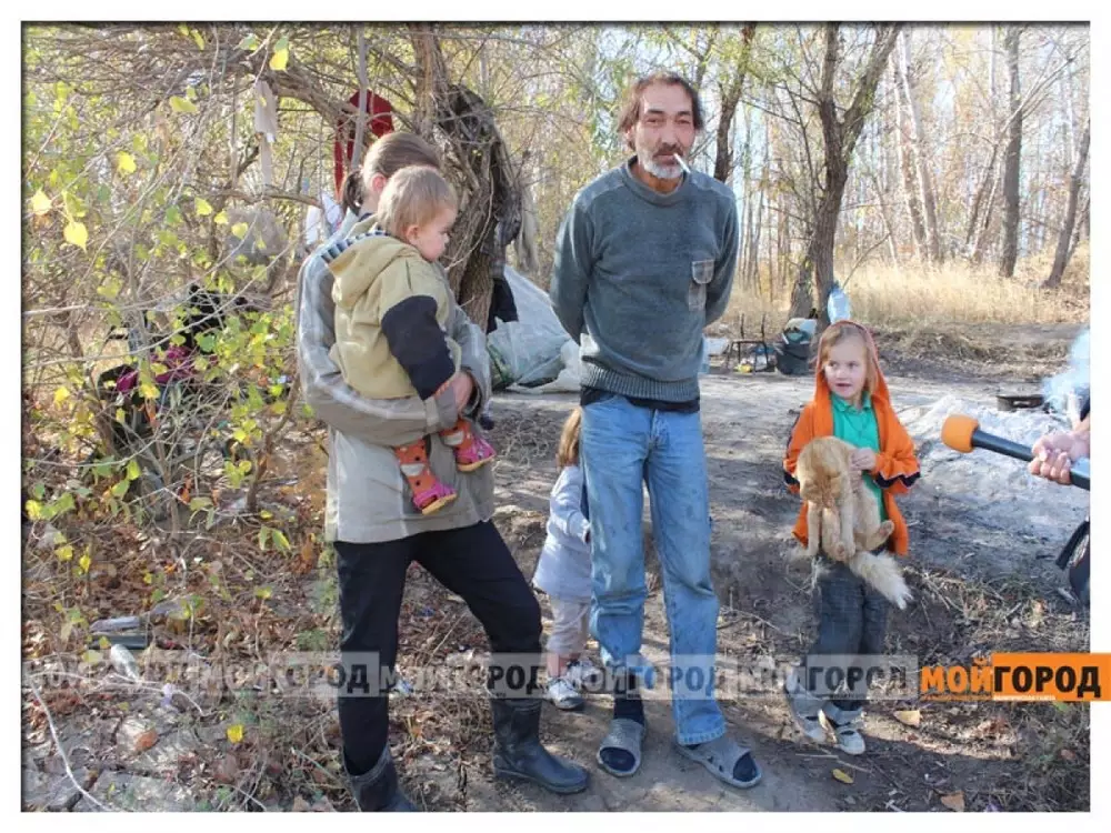 В лесу 24-летняя Настя Еремина и ее супруг, 44-летний Репек Абсиметов, живут с начала лета. Вместе с родителями здесь обитают полуторагодовалая Камилла, трехлетняя Карина и Альбина, которой шесть лет. По словам Ереминой, раньше семья жила у ее матери, но позже с ней произошла ссора, после чего супруги были вынуждены уйти жить в лес. Отец семейства подрабатывает грузчиком. Как оказалось, он родом из Ташкента, документов у мужчины нет.