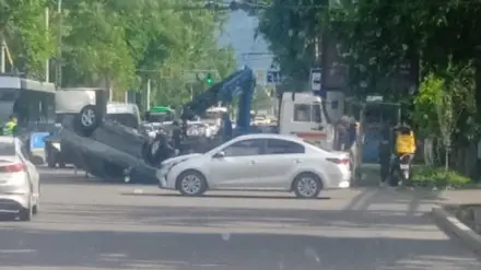 Как сообщила пресс-служба полиции, внедорожник Lexus двигался по улице Ауэзова в южном направлении, в то время как Hyundai ехал в восточном направлении по проспекту Абая. На перекрестке произошло столкновение, в результате которого Lexus опрокинулся на крышу.