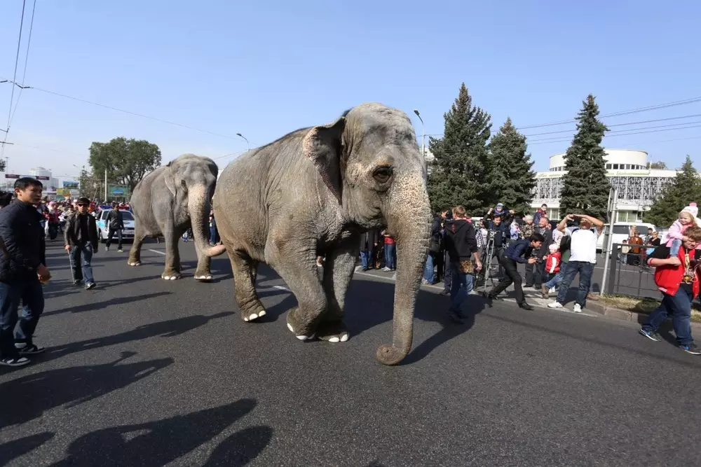 Участие в шествии приняли два слона, шесть пони и две лошади. Кавалькада слонов и лошадей прошла от алматинского Центрального цирка по проспекту Абая до улицы Байтурсынова в восточную сторону, далее, развернувшись, животные прошли обратно до улицы Манаса и направились в цирк в сопровождении дрессировщиков. Движение было ограничено от улицы Манаса до Байтурсынова. Животных сопровождало авто управления дорожной полиции.