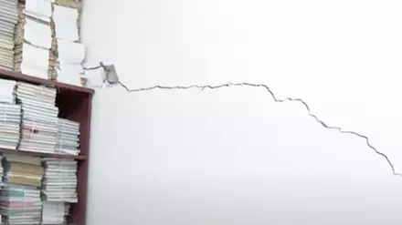 Всего закрыто уже 7 кабинетов на двух этажах. Родители и педагоги опасаются за безопасность детей. Из-за трещин в стенах и просевших полов обучение в начальном блоке и вовсе пришлось закрыть.