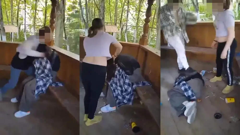 На видео запечатлено, как несколько человек избивают сидящую на лавочке девочку: бьют ее ногами по лицу, высыпают на нее отходы и надевают на голову мусорное ведро. (Редакция Tengrinews.kz не публикует видеоролик по этическим соображениям).