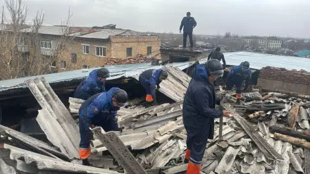 В Караганде без крыши частично остался пятиэтажный жилой дом. Поврежденная площадь составила 500 квадратных метра. Сорвавшаяся кровля повредила два легковых автомобиля. Силами ДЧС проводится работа по креплению конструкции профлистов, которые создают угрозу.