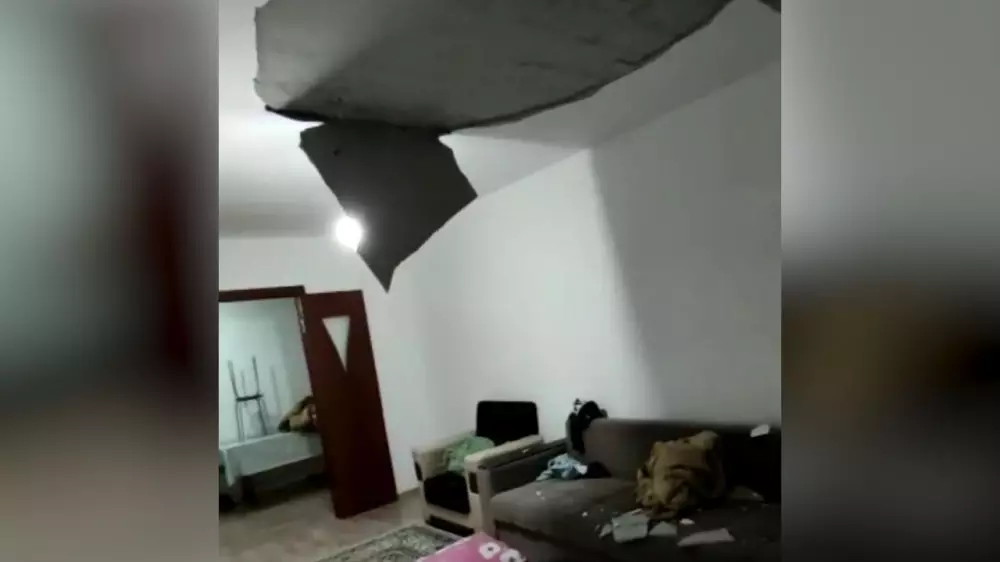В новой многоэтажке Аксу потолочная штукатурка обрушилась в комнате, где спал малолетний ребенок, и едва не покалечила малыша, передает корреспондент Tengrinews.kz.