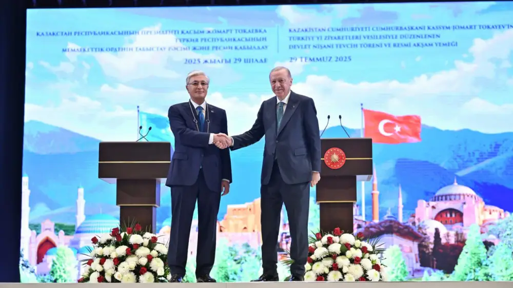 "Благодаря этому мы достигли неплохих результатов и обеспечили стабильный экономический рост. По итогам 2024 года ВВП страны вырос на 5,1 процента, а за первое полугодие этого года экономика Казахстана увеличилась на 6,2 процента. В нынешнем году мы планируем довести валовой внутренний продукт до 300 миллиардов долларов. Это самый большой показатель в Центральной Азии. Для достижения поставленных целей мы уделяем приоритетное внимание четырем направлениям: цифровизации и развитию искусственного интеллекта, укреплению транспортно-транзитного потенциала, модернизации аграрного сектора, а также запуску крупных инфраструктурных проектов в энергетике и промышленности. Отмечу, что Астана придает особое значение сотрудничеству с Турцией для успешной реализации данных задач", – сказал Токаев.