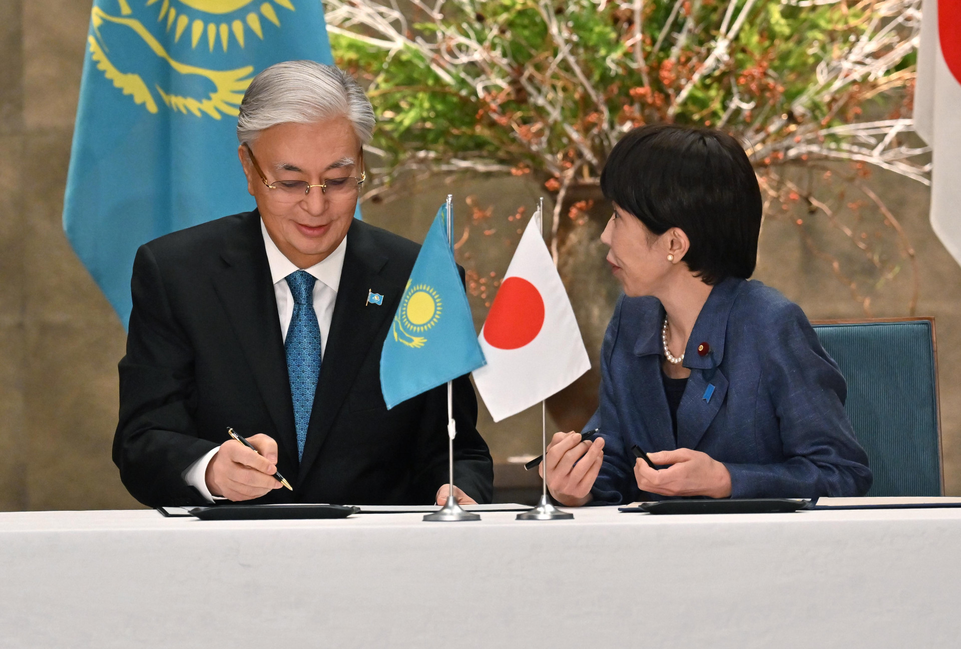 Касым-Жомарт Токаев с премьер-министром Японии Санаэ Такаичи на встрече в Токио. Фото Akorda.kz