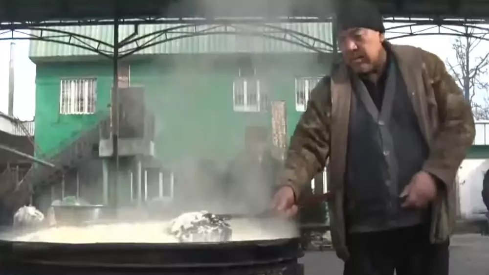 60 килограммов риса в обед и вечером. Полный казан плова накормит 600 человек. Горячие блюда в одной из мечетей города Токмока готовят уже пятые сутки. Еще в воскресенье кормить вынужденных переселенцев приходилось с утра и до вечера. После того как казахстанцы стали возвращаться в свои дома, горячего питания требуется гораздо меньше, сообщает телеканал.