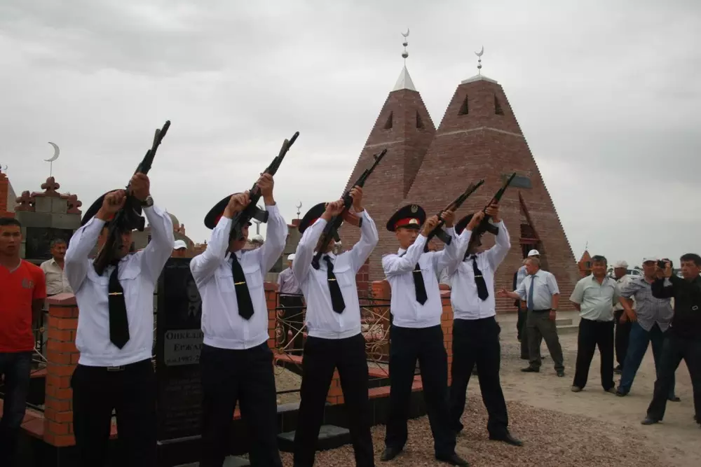 Проститься с полицейским в поселок Баканас пришли около двух тысяч человек. Его похоронили на кладбище соседнего поселка Акдала.