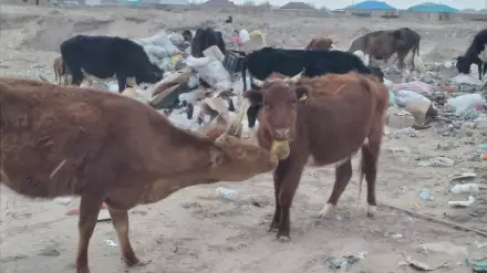 Домашний скот пасется на полигоне мусорных отходов в аульном округе Махамбет в Кызылординской области, передает корреспондент Tengrinews.kz.