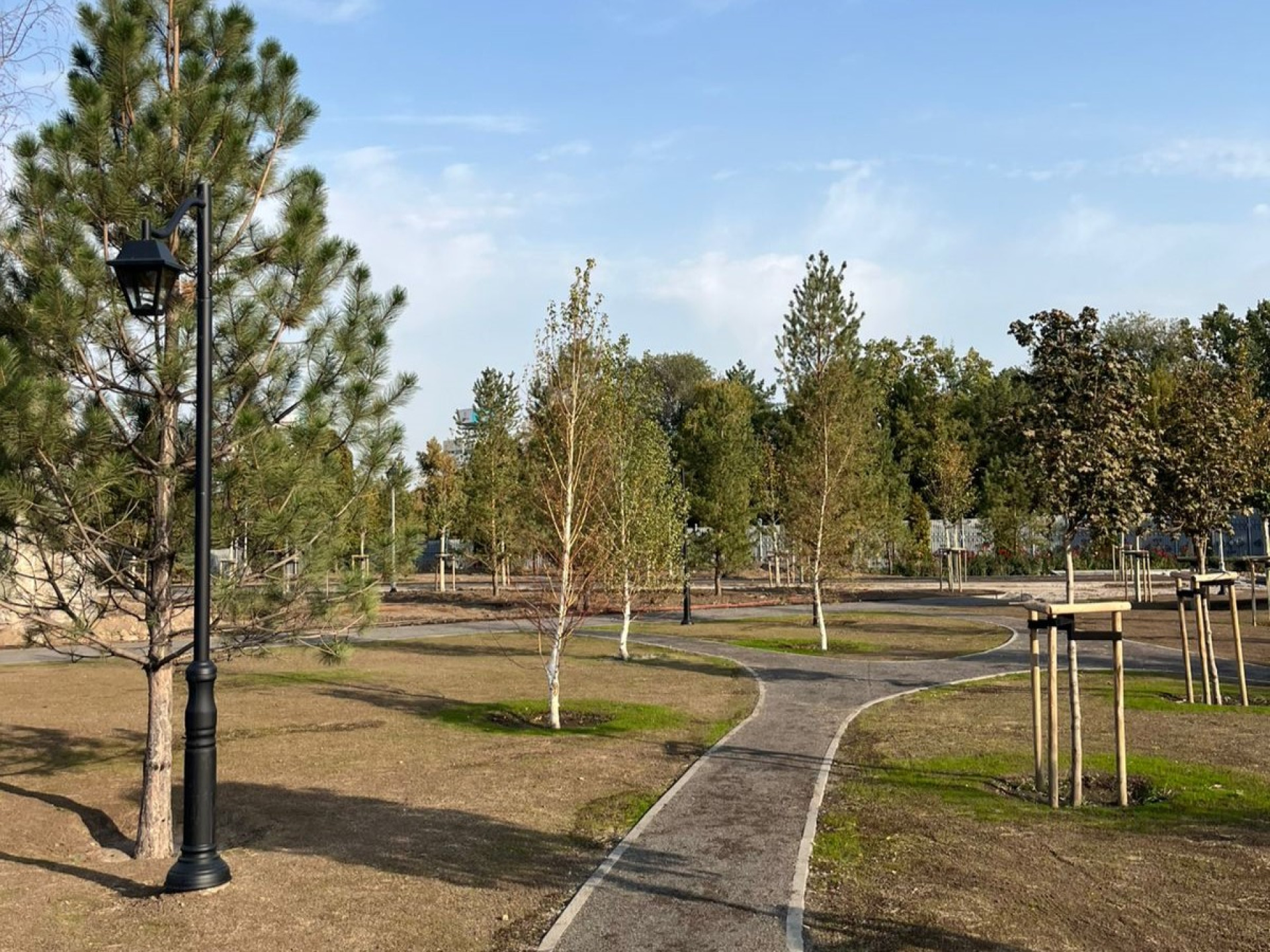 "На территории построен пруд, который в зимний период будет использоваться как каток. Завершаются работы по устройству пешеходных, беговых и асфальтовых дорожек", - говорится в ответе на запрос.