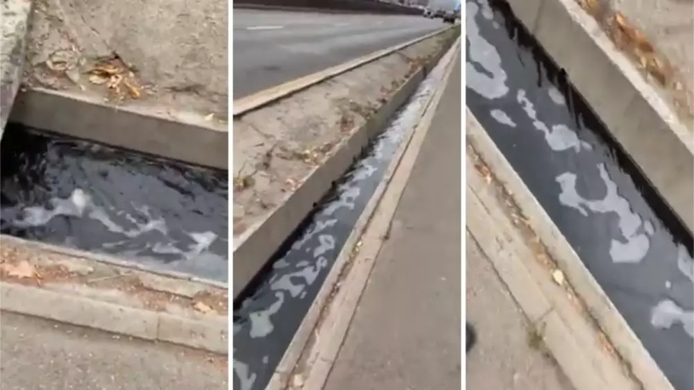 "Слив канализации" в арык сняли на видео в Алматы Кадры из видео