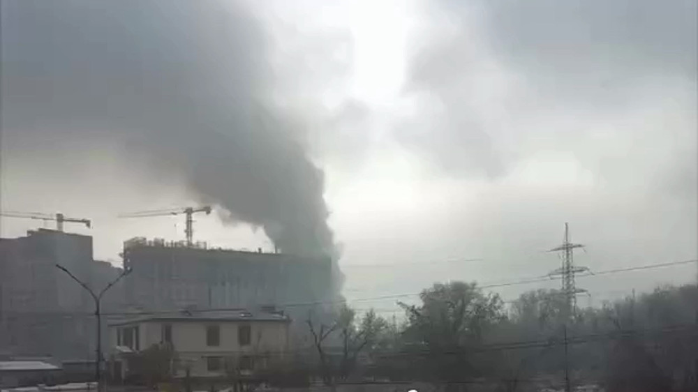 По данным ДЧС Алматы, склад горит открытым пламенем. Огонь перекинулся на кровлю рядом стоящего трехэтажного административного здания.