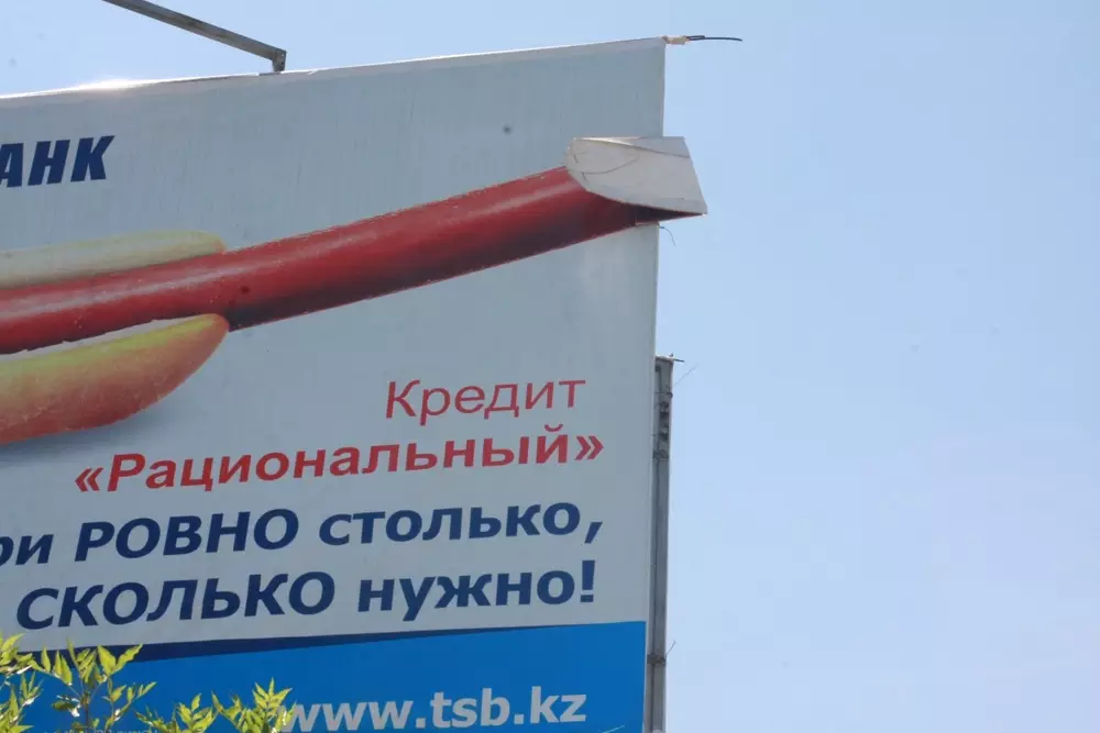 В Алматы на пересечении улиц Аль-Фараби и Жарокова на рекламном щите Цеснабанка с изображением хот-дога край сосиски, который выходит за пределы билборда, надломился и сейчас болтается на ветру, сообщает корреспондент Tengrinews.kz.