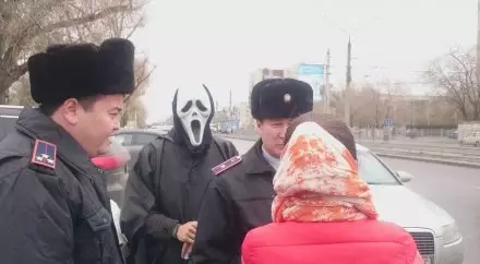 "Сегодня вместо административного протокола нарушителей правил дорожного движения встречали переодетые в костюмы "смерти" (черные балахоны с масками "Призрачного лица" из кинофильма "Крик" - Прим. автора) представители молодежного крыла "Жас Отан", которые с устрашающим видом раздавали нарушителям памятки о строгом соблюдении правил дорожного движения", - говорится в распространенном сообщении.