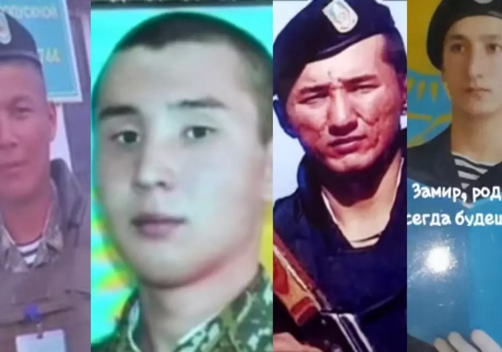 Телеканалы КТК, "31 канал" и "Отырар" публикуют фотографии погибших во время учений в Актау морских пехотинцев - 19-летнего Багытжана Калыбая, который призывался из поселка Макат Атырауской области, 19-летнего Асылжана Махамбетова из Кульсаринского района Атырауской области, 23-летнего Замира Адилова из Енбекшиказахского района Алматинской области и 19-летнего Бауыржана Жолдыбая из Сузакского района Южно-Казахстанской области.