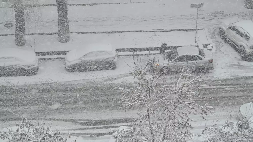 Большой снегопад обрушился на Алматы. Tengrinews.kz предлагает посмотреть, что сейчас происходит в городе.