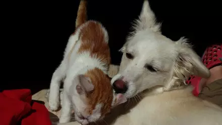 Удивительную историю рассказала руководитель общественного фонда и центра реабилитации раненых животных "Сердца Павлодара" Мария Гребенкина. По ее словам, во время кормления четвероногих постояльцев центра волонтер заметил, что одна из собак не выходит из будки. Мужчина заглянул внутрь и обнаружил там кошку.