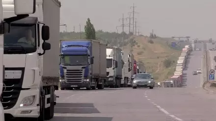 "Здесь нет ни туалетов, ни столовых. Отлучиться не можем. Потому что в любой момент машины начнут двигаться вперед. Так можно потерять очередь. Ничего не остается нам, как сидеть и ждать", - говорит дальнобойщик из Узбекистана Дилмурод Бакиров.