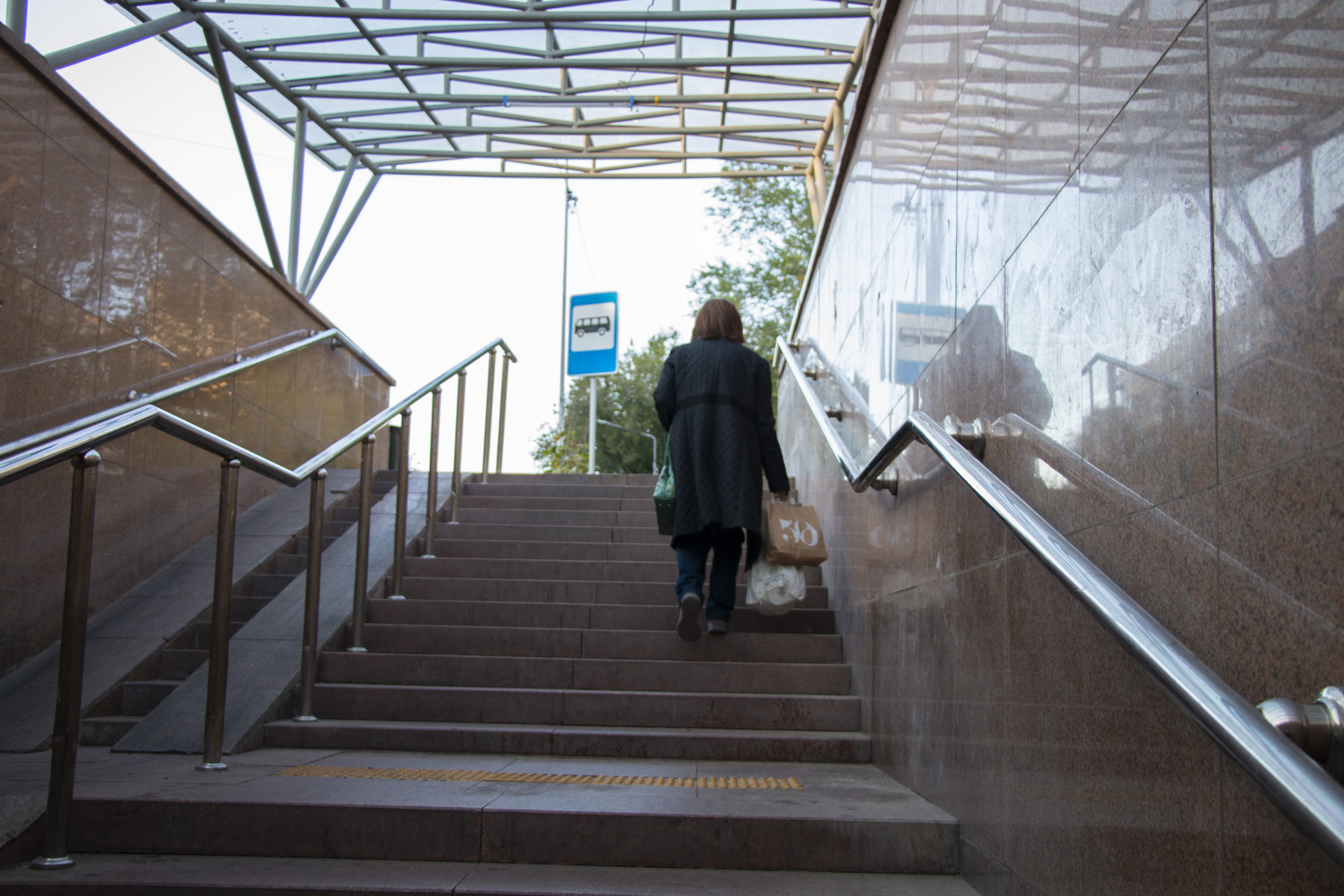 В самом переходе темно и пыльно. Однако у людей не остается выбора, и они вынуждены переходить улицу здесь.