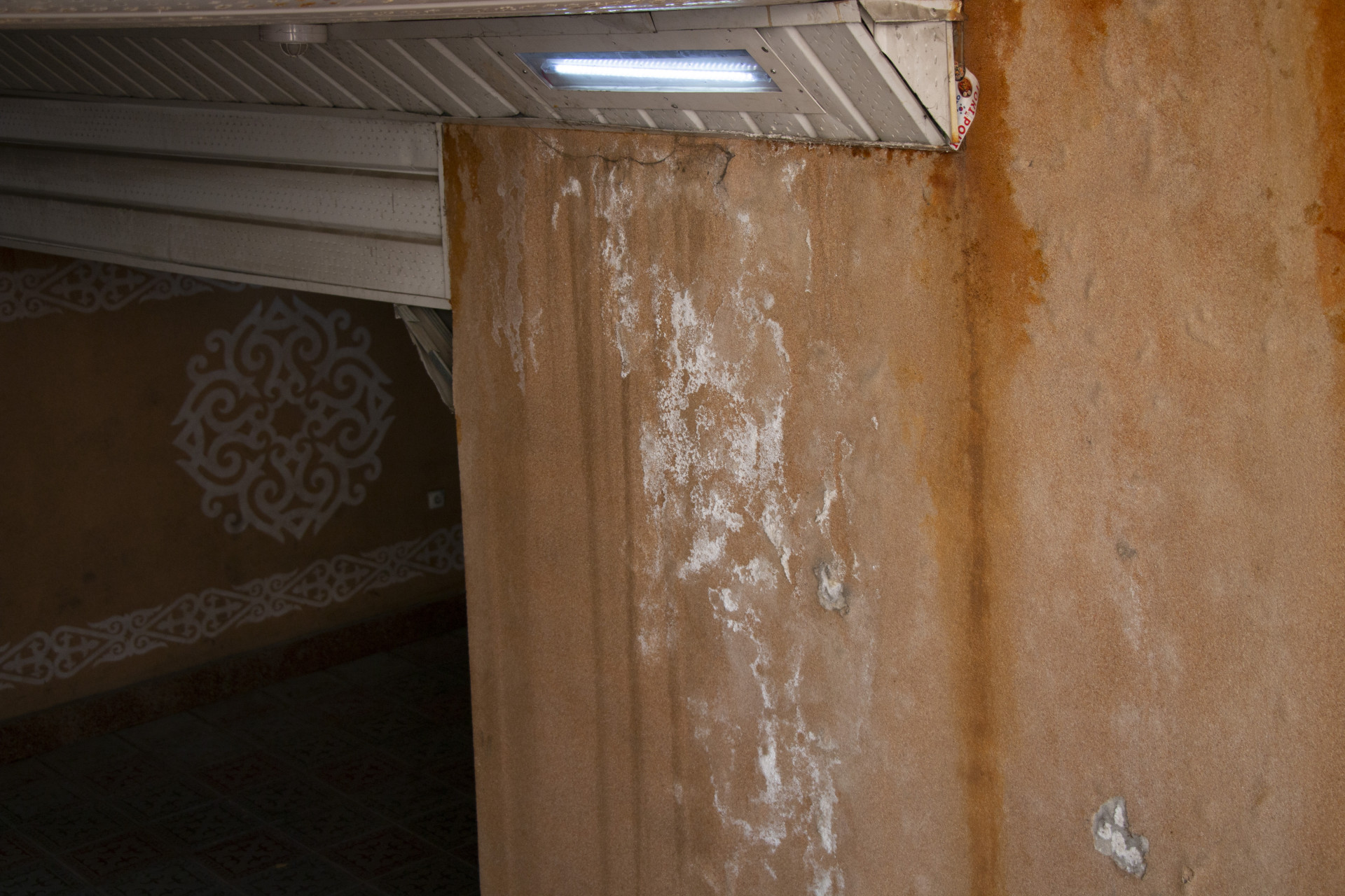 С потолка капает вода, штукатурка на стенах осыпалась из-за сырости. Возможно, что изначально здесь некачественно сделали гидроизоляцию.