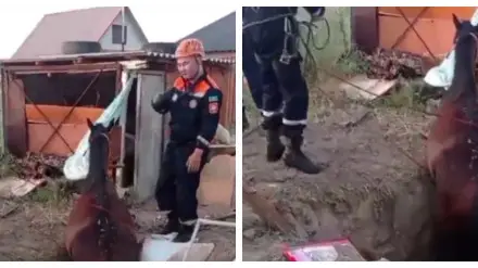 Спасатели вытащили из колодца лошадь в Алматинской области Кадры из видео/МЧС
