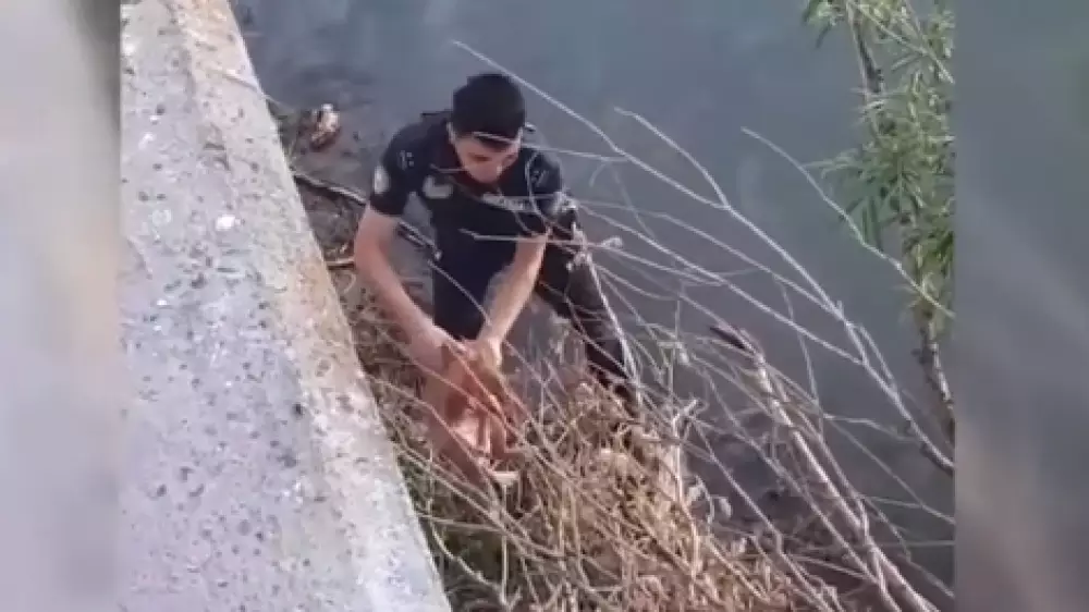 Полицейский спас упавшего в реку кота в Усть-Каменогорске, сообщает Tengrinews.kz со ссылкой на Polisia.kz.