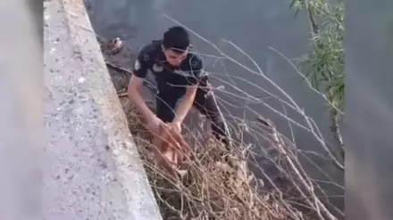 Спасение кота из реки полицейским сняли на видео в Усть-Каменогорске