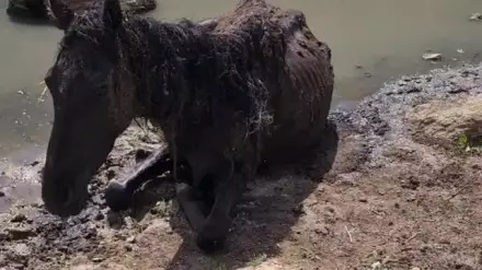 "В урочище Саура мы вывозили отдыхать 40 детей из многодетных и малообеспеченных семей, а также особенных деток. Все прошло хорошо, но когда мы пошли в само урочище Саура, к озеру, стали свидетелями очень непростой и неприятной ситуации. При подходе к урочищу у водички находилось стадо лошадей. Мы сразу заметили, что одной лошади плохо, она не встает и издает странные звуки, тяжело дышит. Через некоторое время мы заметили, что лошадь упала в воду. Видя, что лошадь не может самостоятельно выйти из болота, пытались помочь ей встать. Лошадь в какой-то момент полностью рухнула в воду. Мы не раздумывая бросились ее спасать. Не знаем, откуда у нас появились силы, но мы ее вытащили", - рассказали волонтеры.