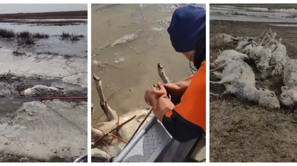 В Нуринском районе Карагандинской области на реке Жаманкон спасатели обнаружили 505 туш погибших сайгаков, 175 из них утилизировали. Об этом сообщили в МЧС, передает Tengrinews.kz.