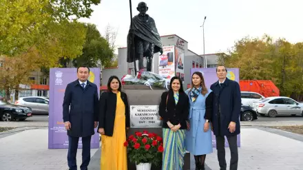 Государственный министр иностранных дел и культуры Индии Минакаши Лекхи прибыла в Астану для участия в саммите СВМДА. В ходе визита в годовщину дня рождения Махатмы Ганди она приняла участие в открытии статуи в натуральную величину.