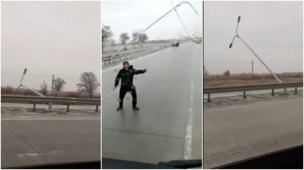 Столбы повалило из-за сильного ветра в Туркестанской области Кадры видео.