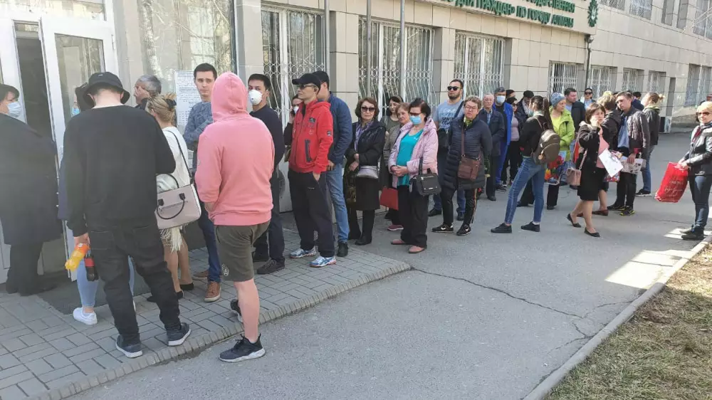 Аналогичную ситуацию можно наблюдать и в специализированном ЦОНе в микрорайоне Алматы. Отмечается, что очередь перед этим зданием здесь до сих пор не рассеялась.