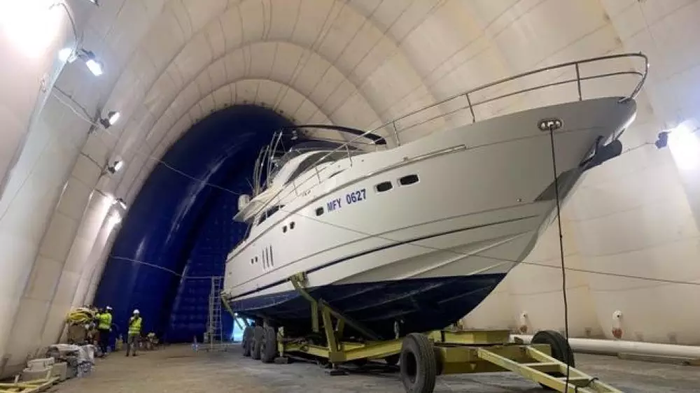 Вместе с моторной яхтой на продажу выставили пневмокаркасное сооружение. Торги объявлялись два раза: в июне - методом на повышение и в сентябре - на понижение. Однако оба раза они признаны несостоявшимися из-за отсутствия участников.