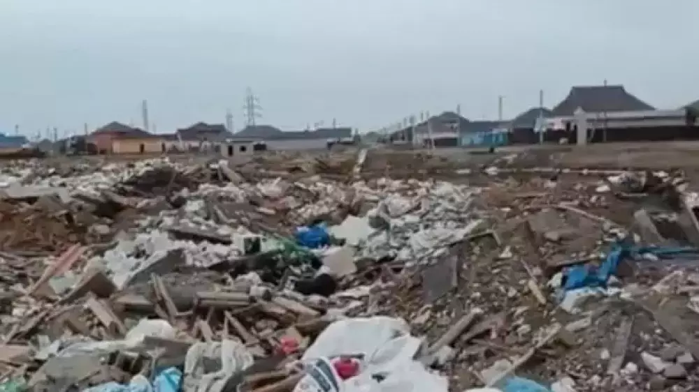 Сообщается, что территория, заполненная мусором, расположена между жилыми домами.