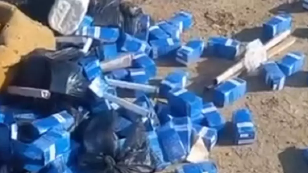Десятки упаковок лекарственных препаратов, неиспользованных шприцев и ампул обнаружил у села Батыр местный житель. Мужчина просит ответственные организации принять меры по устранению свалки, так как она, возможно, представляет угрозу для людей и пасущегося скота.