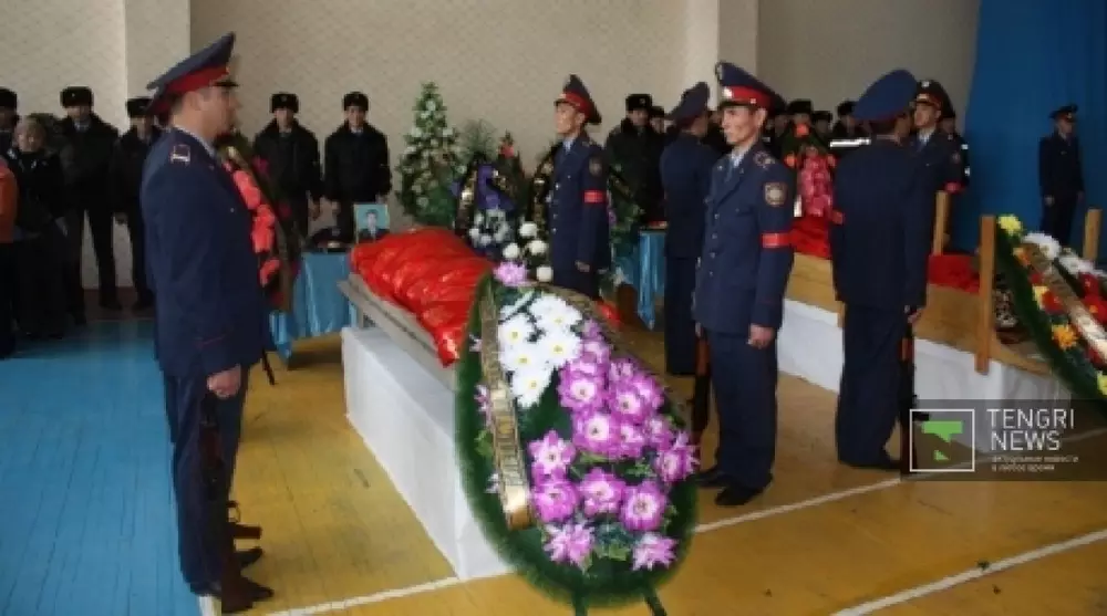 В Таразе семьи погибших в теракте полицейских получили квартиры Прощание с погибшими. Фото ©Данияр Бозов