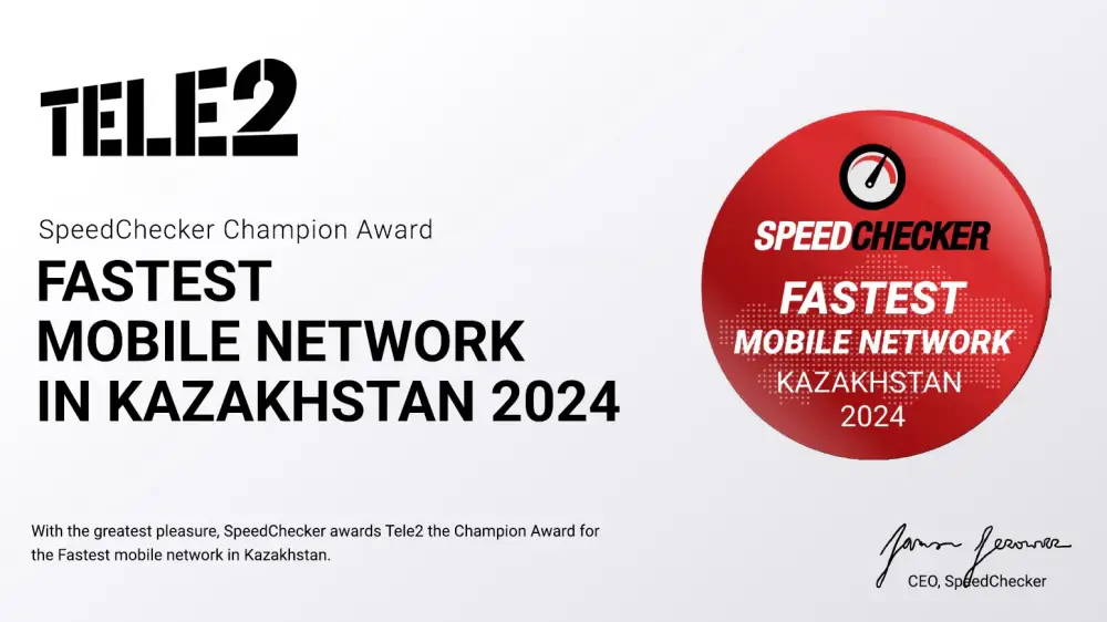 Tele2 снова получил престижную награду. Оператор завоевал премию SpeedChecker Champion Award за "Самый быстрый мобильный интернет в Казахстане 2024".