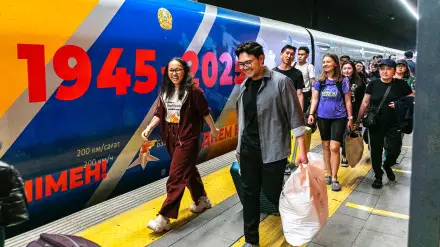 Данные поезда посвящены памяти 80-летия Великой Победы и бессмертным подвигам казахских героев в годы Великой Отечественной войны.
