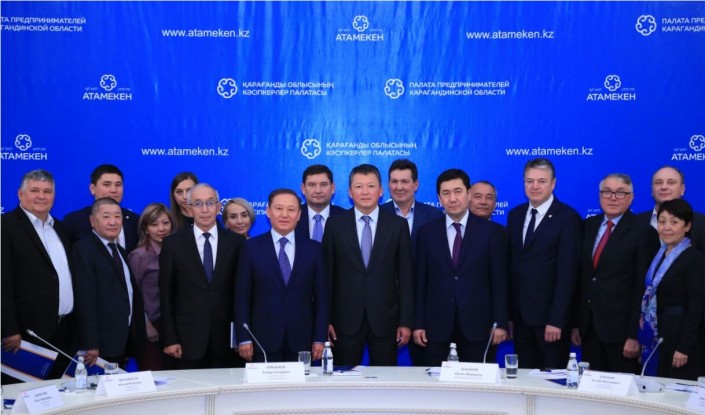 В Караганде состоялось заседание Регионального совета, в котором приняли участие председатель президиума НПП РК "Атамекен" Тимур Кулибаев, председатель правления "Атамекена" Аблай Мырзахметов, аким Карагандинской области Ерлан Кошанов, члены Регионального совета палаты предпринимателей и бизнесмены.