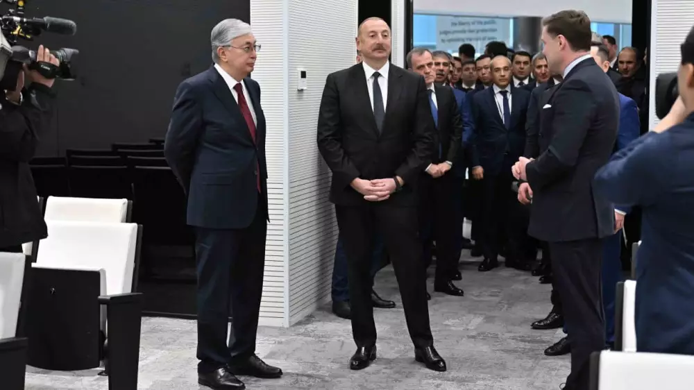 Президенты Казахстана и Азербайджана Касым-Жомарт Токаев и Ильхам Алиев посетили международный финансовый центр "Астана" (МФЦА), передает Tengrinews.kz со ссылкой на "Акорду".