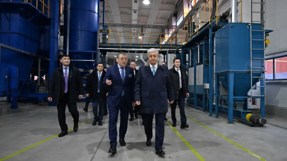 Рабочая поездка Касым-Жомарта Токаева в регион началась с посещения завода по производству промышленных аккумуляторных батарей, расположенного в индустриальной зоне "Талдыкорган".