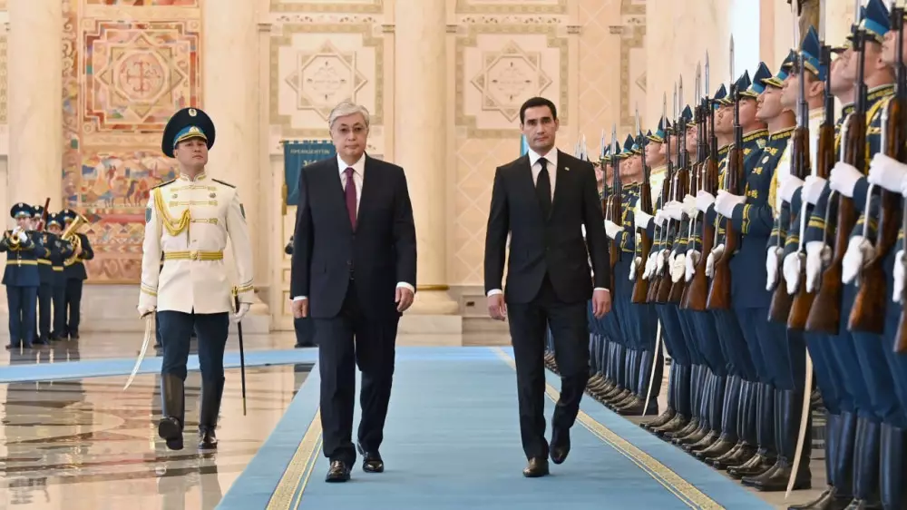 "У нас общая граница, общая история, фактически общая культура, поэтому приветствую вас от всей души. Символично, что ваш первый государственный визит в нашу страну совпал с юбилейной вехой - 30-летием дипломатических отношений. Опираясь на многовековую дружбу и добрососедство, единые культурные и исторические ценности, Казахстан и Туркменистан за эти годы построили прочные гармоничные отношения, которые сегодня служат образцом межгосударственного партнерства", - отметил Глава государства.