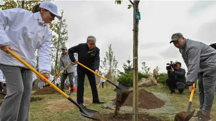 Совместно с волонтёрами и экоактивистами Глава государства принял участие в посадке деревьев на территории столичного Ботанического сада.