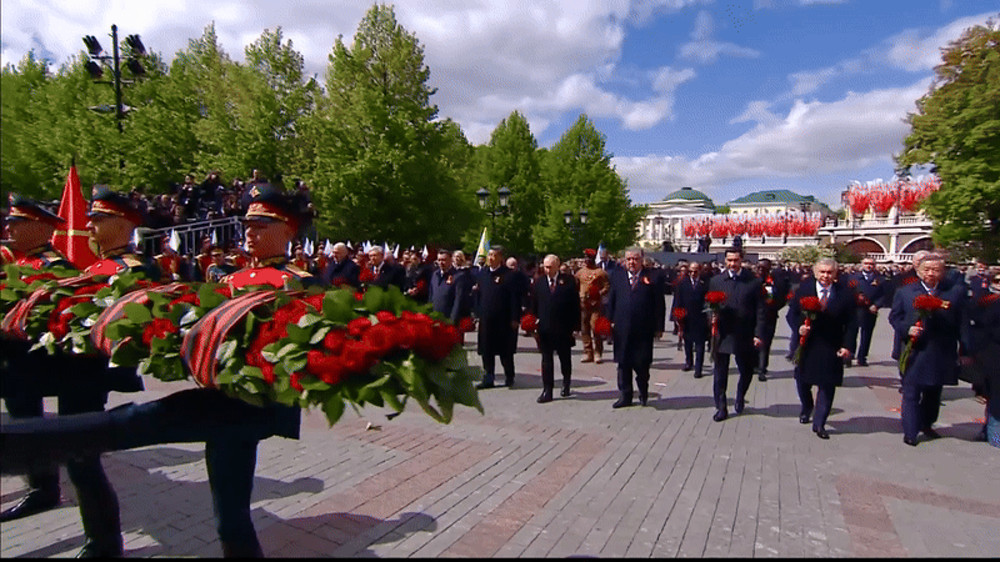 На опубликованном видео Президент Касым-Жомарт Токаев вместе с лидерами других стран, приглашенных на парад Победы, возлагает цветы к могиле Неизвестного солдата.