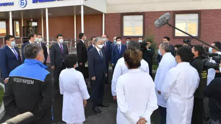Президент тепло побеседовал с медицинскими работниками, затронув вопросы дальнейшего развития национального здравоохранения, оснащения необходимым оборудованием медицинских организаций, обновления коечного фонда и инфраструктуры, а также увеличения заработной платы медиков.