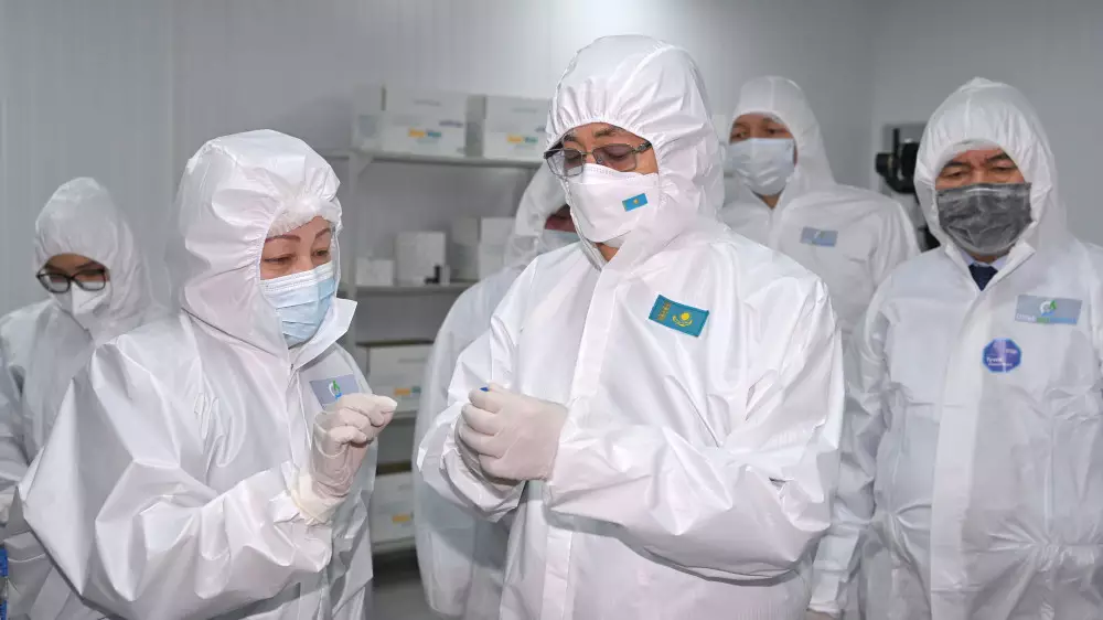 Биофармацевтический завод по производству вакцин QazVac при Научно-исследовательском институте проблем биологической безопасности расположен в поселке Гвардейском Кордайского района. Президенту показали технологическую линию производства вакцин, лабораторное оборудование и мобильные реакторы.