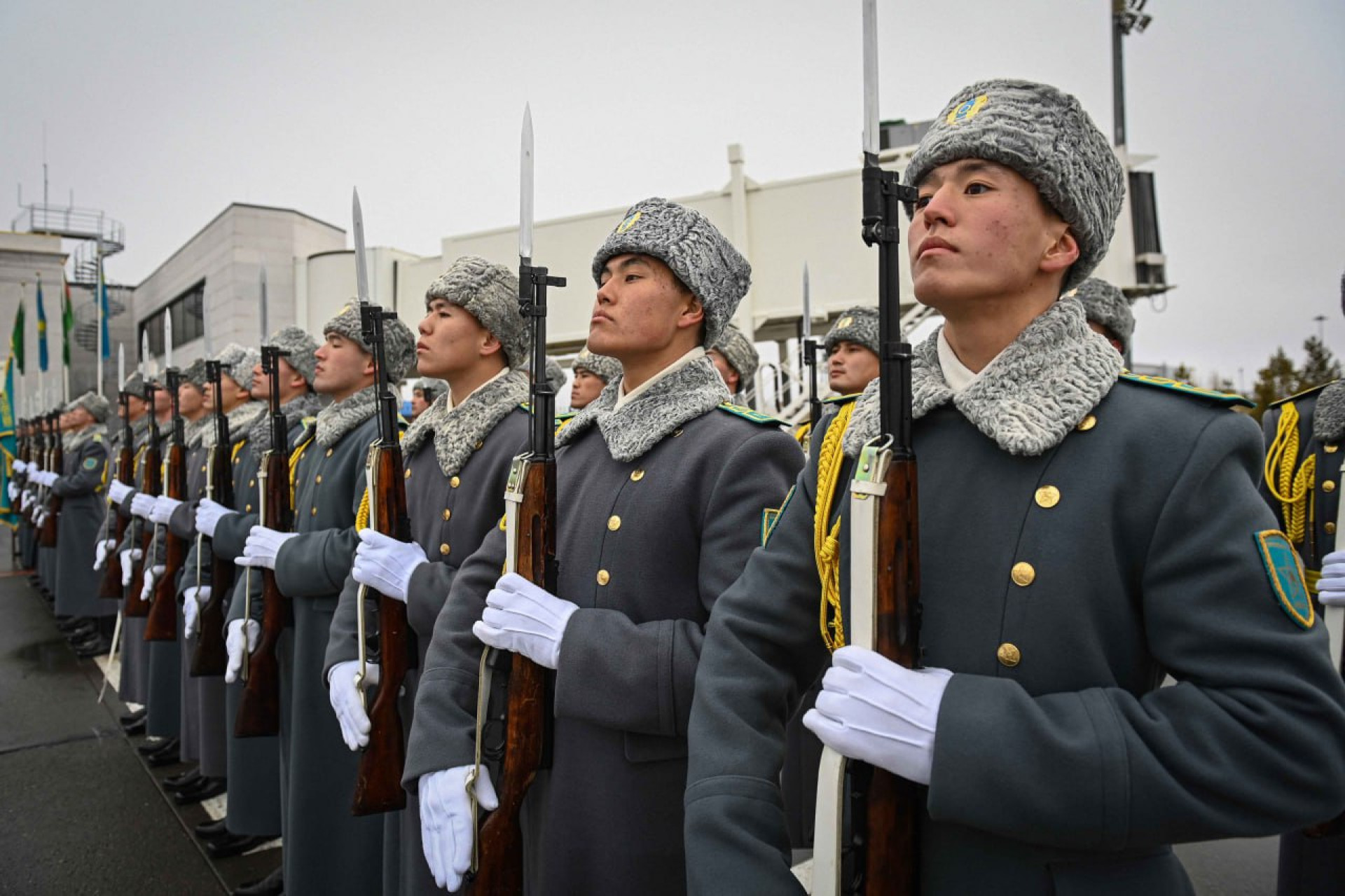 В честь высокого гостя в международном аэропорту Астаны была выстроена рота почетного караула.
