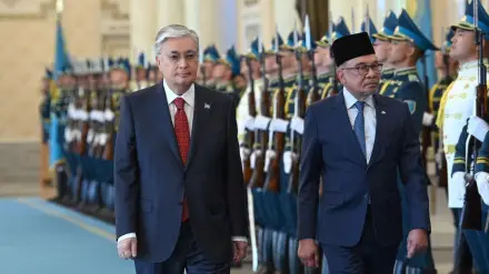 Касым-Жомарт Токаев и Анвар Ибрагим представили друг другу членов официальных делегаций. Начальник роты Почетного караула отдал приветственный рапорт Президенту Казахстана и премьер-министру Малайзии, прозвучали гимны двух государств.
